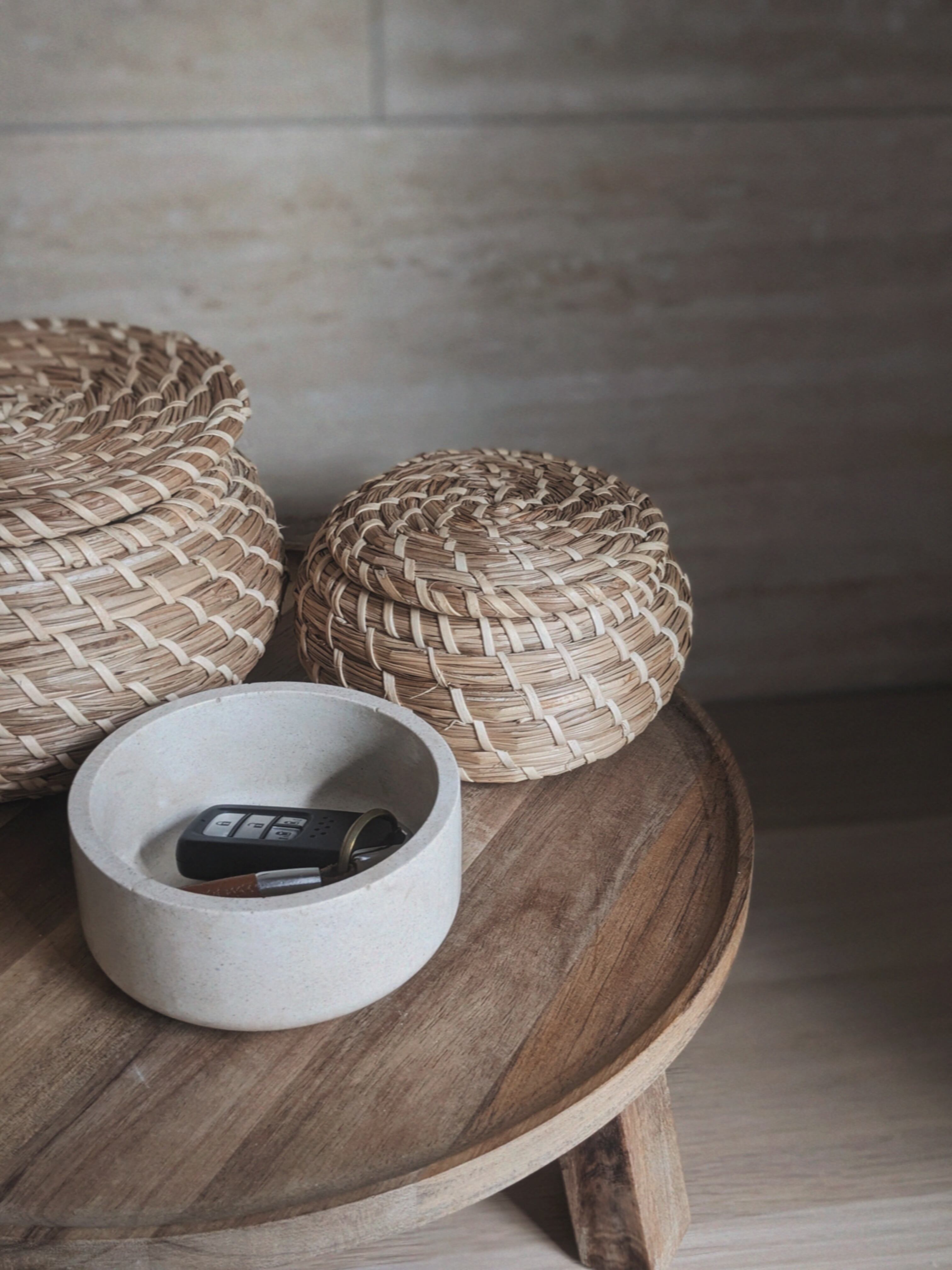 玄関で鍵やアクセサリーを入れたり、キャンドルやドライフラワーを飾ったり。