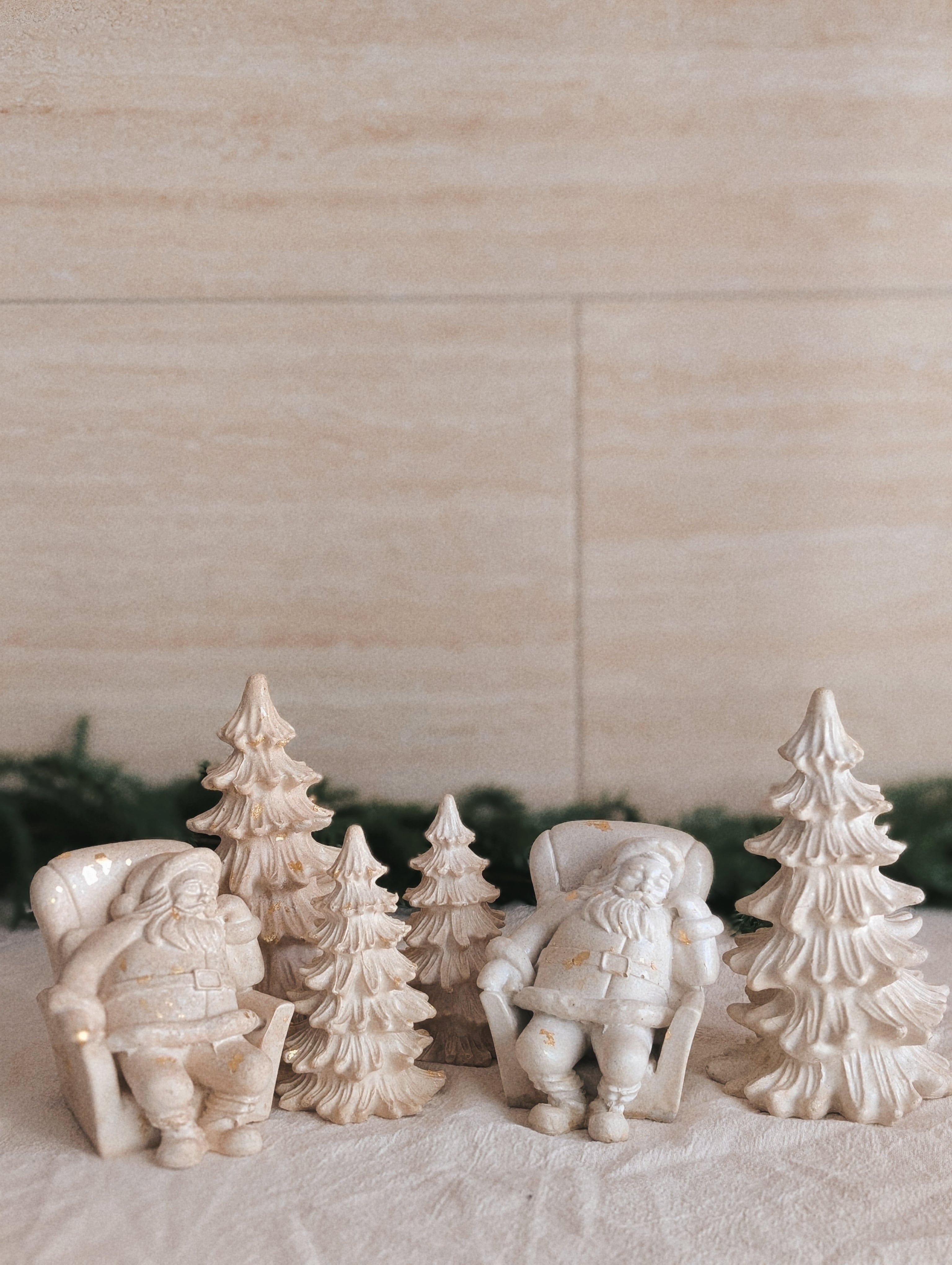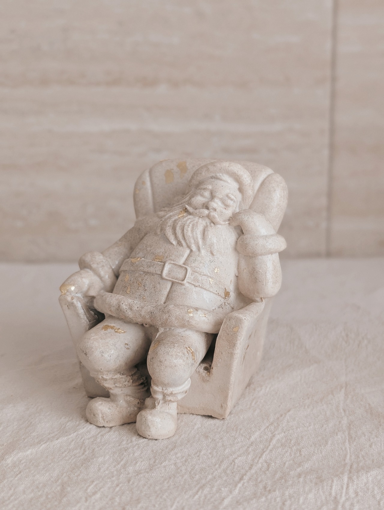 静けさの中に佇む、ストーン調サンタクロース。