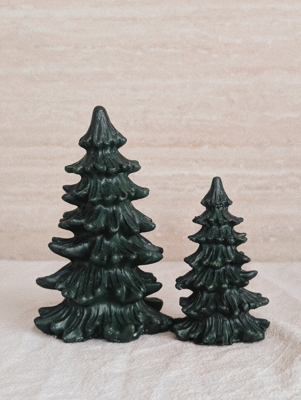 このツリーセットは、深く落ち着いた深緑色と、細部にこだわったアンティーク調のデザインが魅力で、大小のツリーを並べて飾るだけで、まるで小さな森のような格調高い雰囲気を演出します。