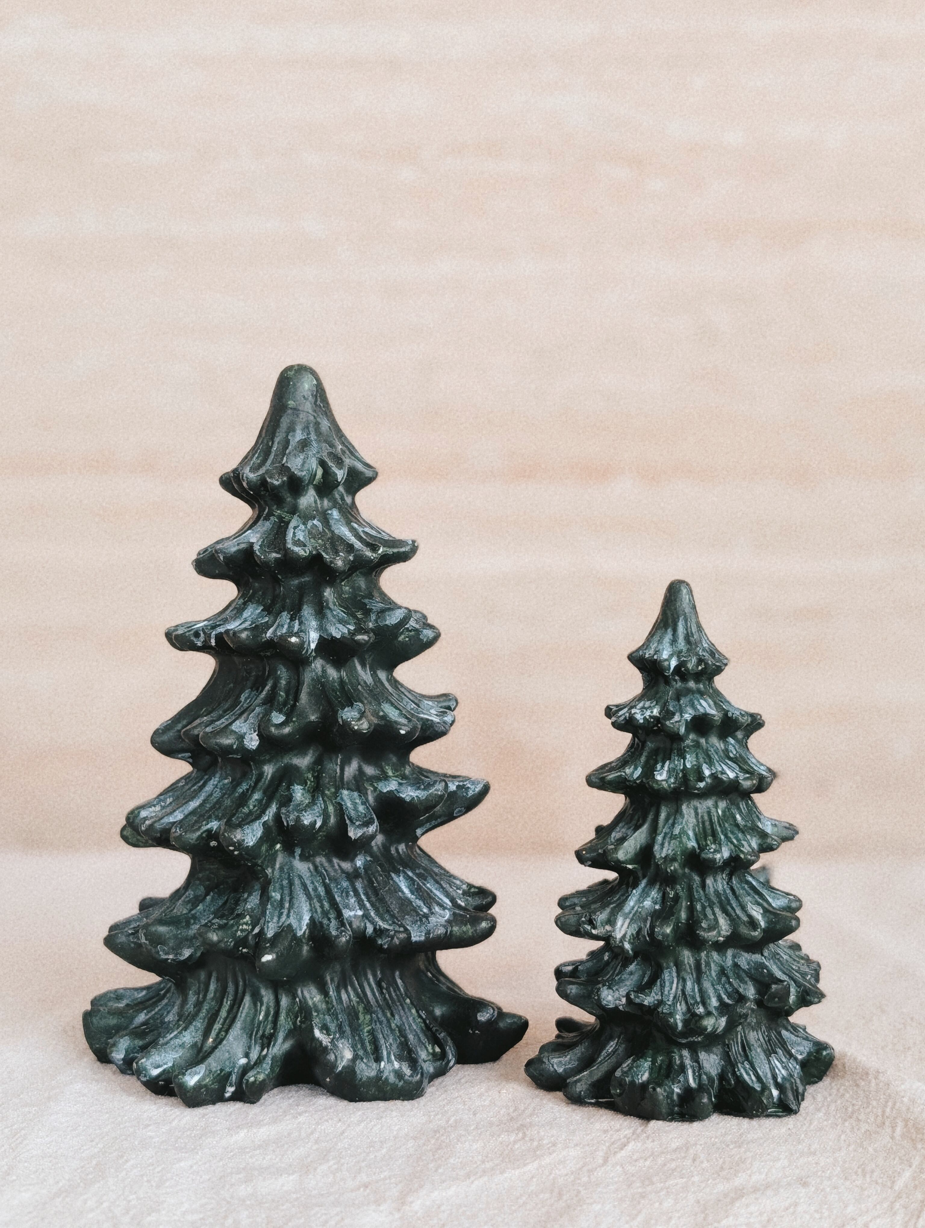 この大小セットは、深緑色のアンティークなデザインのツリーに、雪化粧を施しました。窓辺や棚、玄関に2つ並べて飾れば、ロマンチックで上品な雪景色を演出し、クリスマスディナーのテーブルに置けば、一気に華やかで特別な雰囲気が生まれます。また、一つはご自宅に、もう一つは大切な方への気の利いた冬の贈り物として贈るなど、このセットならではの温かいおもてなしにもお使いいただけます。雪が溶けないこのツリーセットで、今年の冬を彩ってみませんか。