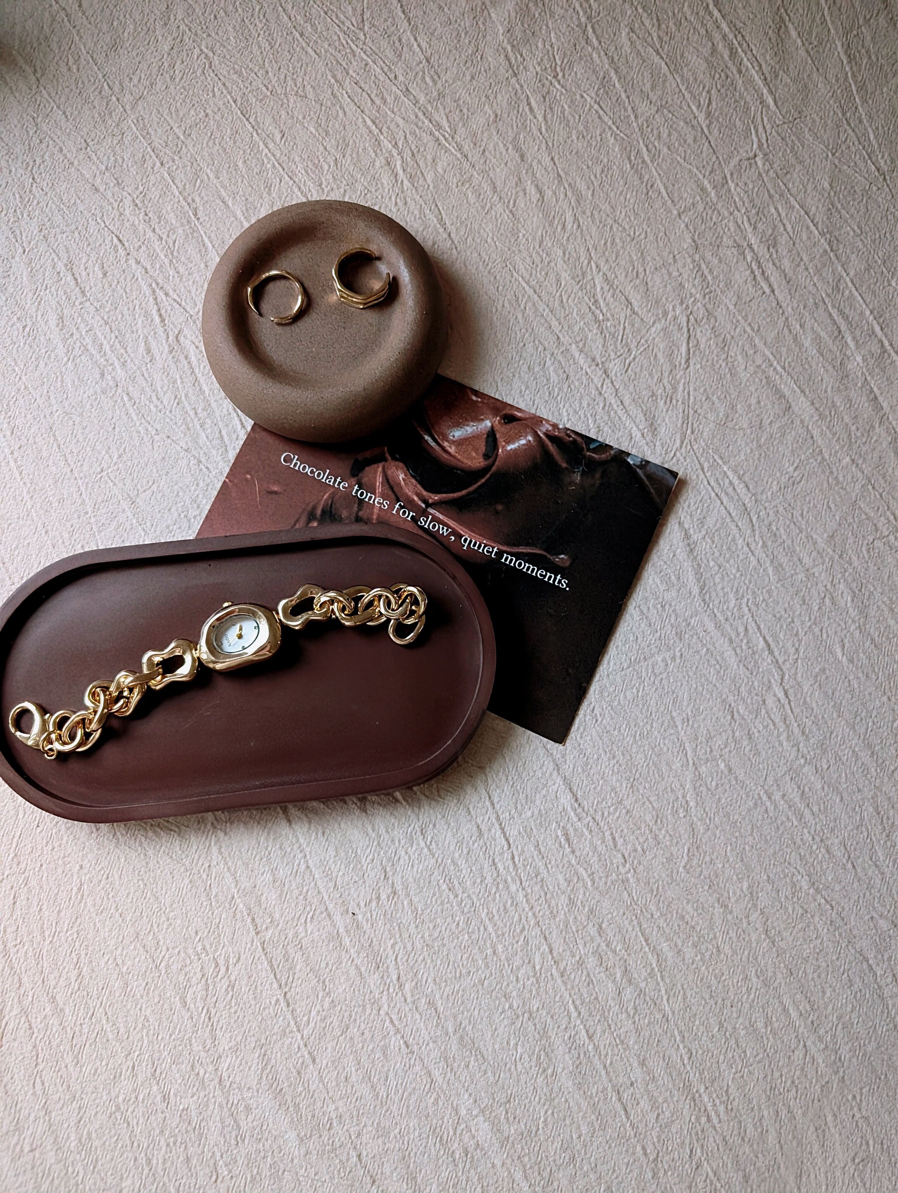 チョコレートを思わせる、深く落ち着いたブラウン。